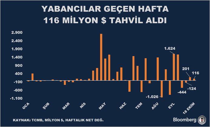 Yabancı yatırımcı hissede satışı üçüncü haftaya taşırken tahvilde alıma döndü.