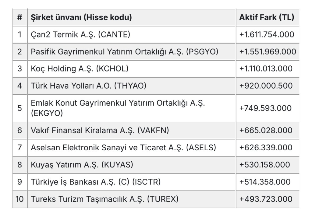 Borsa İstanbul’da bu hafta toplamda 4,6 milyar TL’lik güçlü bir para girişi yaşandı. Yatırımcıların ilgisini çeken ve dikkat çeken işlem hacimleriyle öne çıkan ilk 10 hisse belli oldu. Listenin başında Çan2 Termik (CANTE) 1,6 milyar TL ile yer alırken, onu Pasifik GYO (PSGYO) ve Koç Holding (KCHOL) takip etti. Listeye Türk Hava Yolları, Emlak Konut GYO, ASELSAN gibi güçlü şirketler de dahil oldu. Bu tablo, yatırımcıların belirli sektör ve şirketlere yoğunlaştığını gösteriyor.